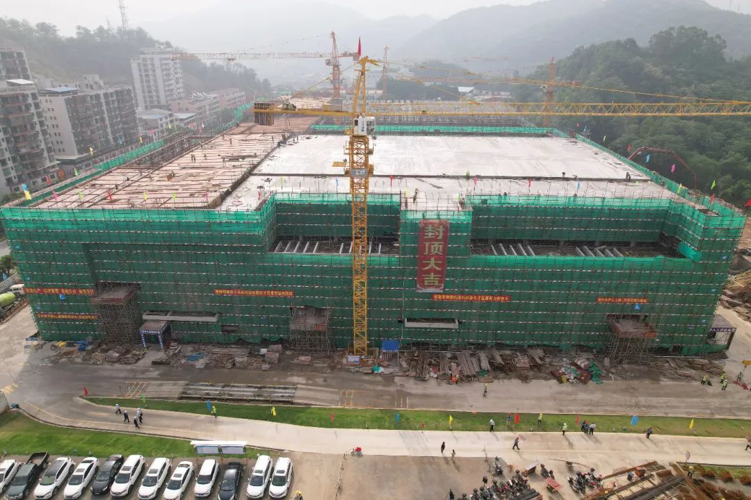 盈華科技高端銅箔項(xiàng)目一期廠房喜封金頂